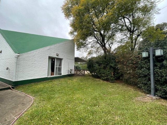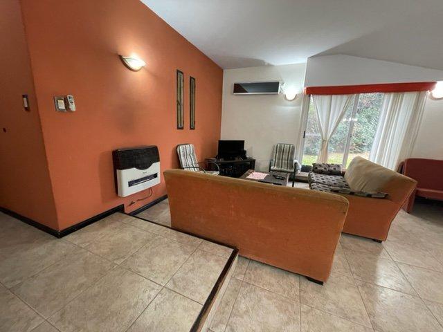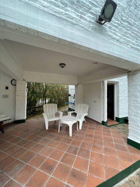 La casa principal se destaca por su amplio living comedor, que incluye un hogar, estufa y aire acondicionado, proporcionando un ambiente acogedor y confortable. La cocina tiene acceso directo al jardín delantero, permitiendo disfrutar de la vista y el espacio verde. Además, la propiedad cuenta con un baño completo con ducha y tres habitaciones, todas equipadas con placard, ofreciendo un generoso espacio de almacenamiento. Un espacio guarda coche está disponible, añadiendo comodidad y seguridad para su vehículo.
