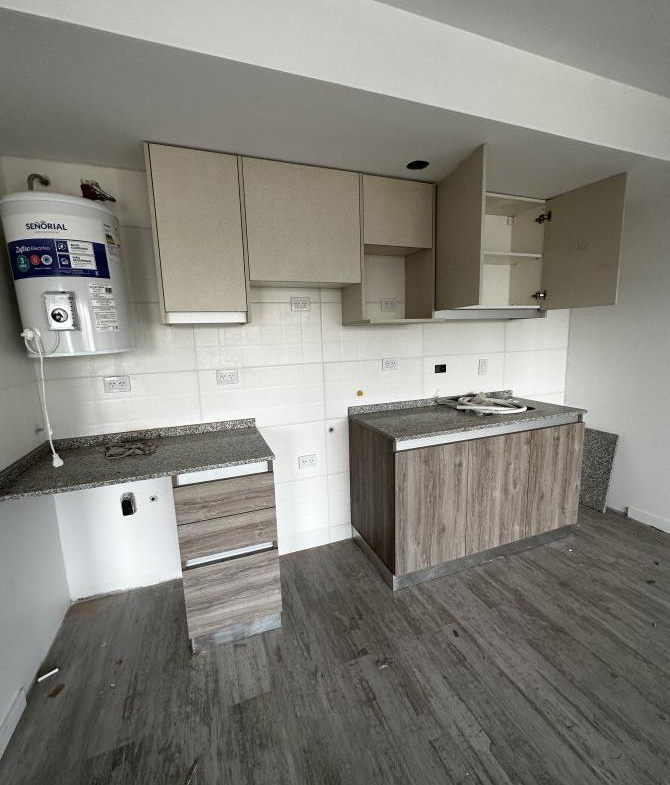 Living comedor con cocina integrada , equipada con artefacto incluido, ideal para disfrutar de un espacio práctico y acogedor.